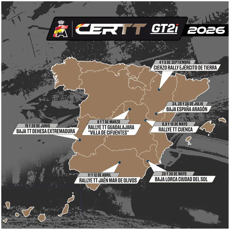 El Campeonato de España de Rallyes Todo Terreno GT2i regresa a la acción este 2026 con algunas novedades en cuanto a fechas se refiere dentro de una temporada que promete volver a ser muy emocionante dentro de un certamen que sigue afianzándose como uno de los que más impacto tiene dentro de los organizados por la Real Federación Española de Automovilismo.